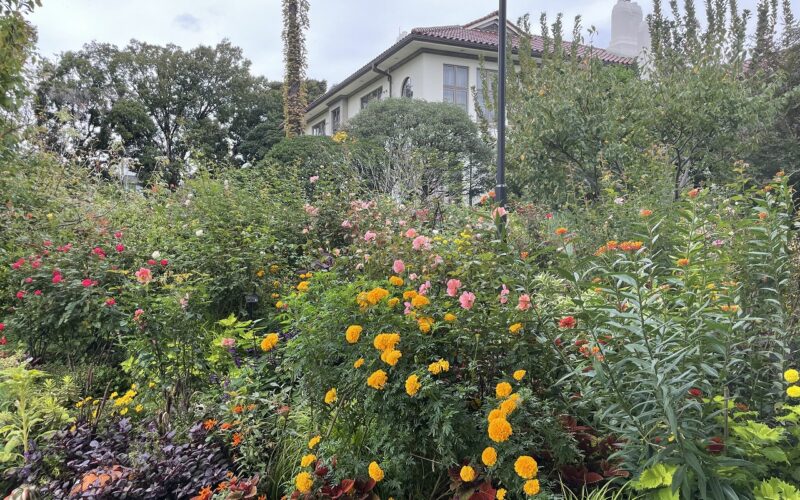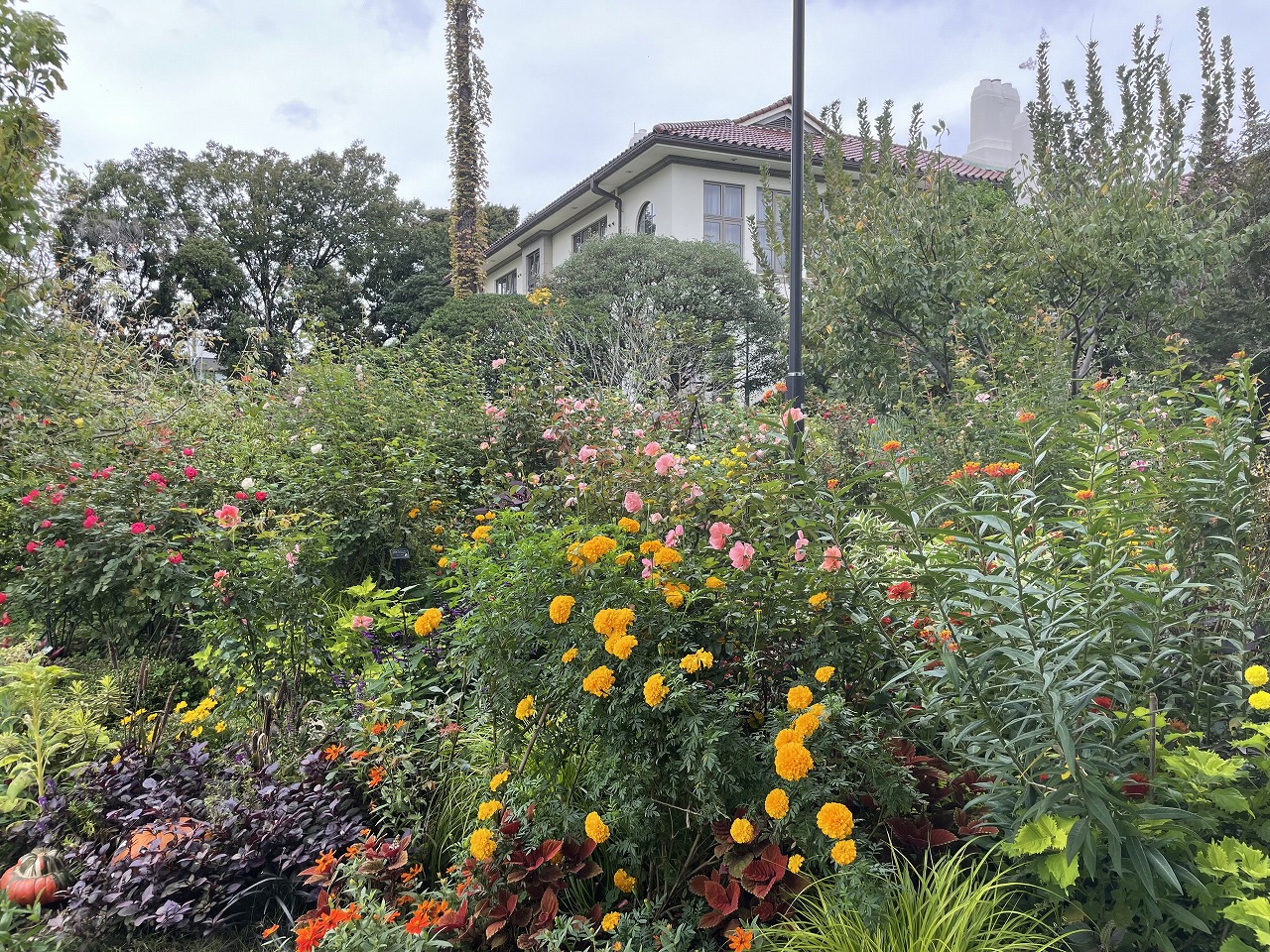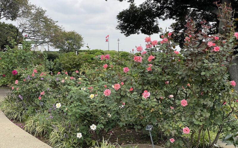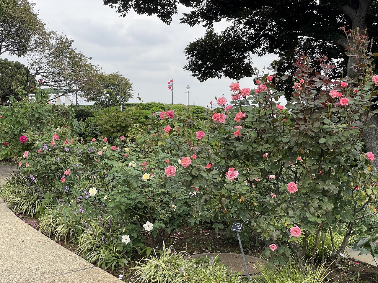 秋バラが見ごろとなりました。 気温次第ですが10月いっぱいは楽しめる予想です。 写真は入口花壇の様子