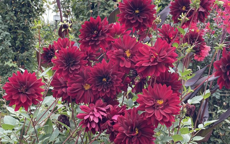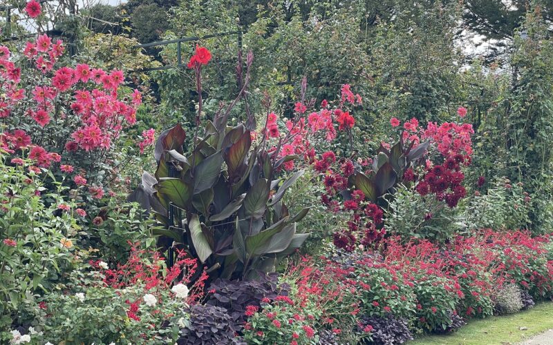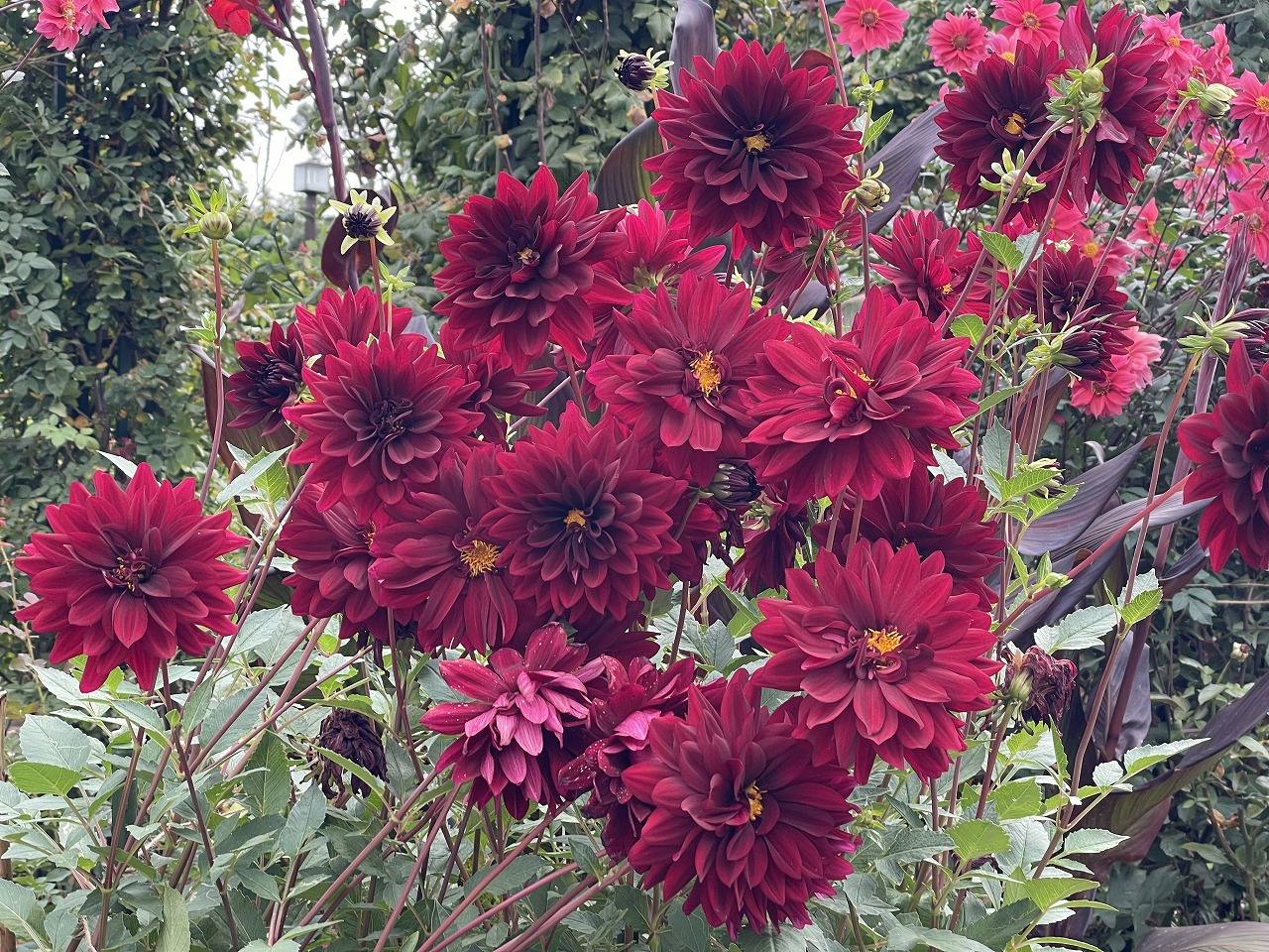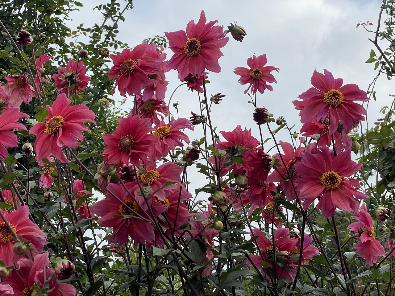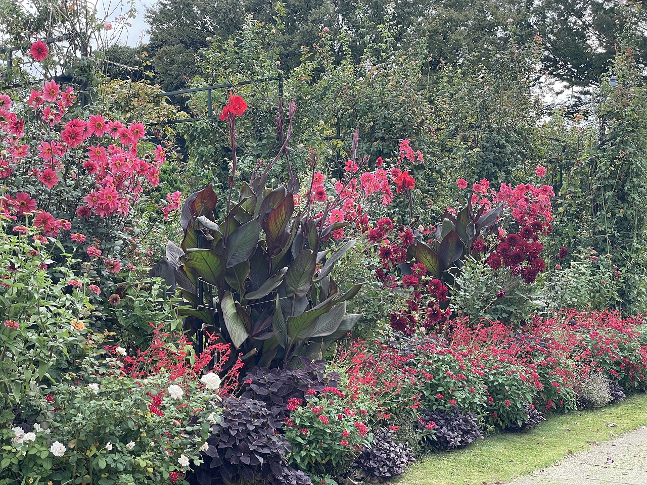 香りの庭のダリアも見ごろです。 つるバラが多いので秋は花が少ない印象ですが、大輪のダリアが花壇を彩ってくれます。