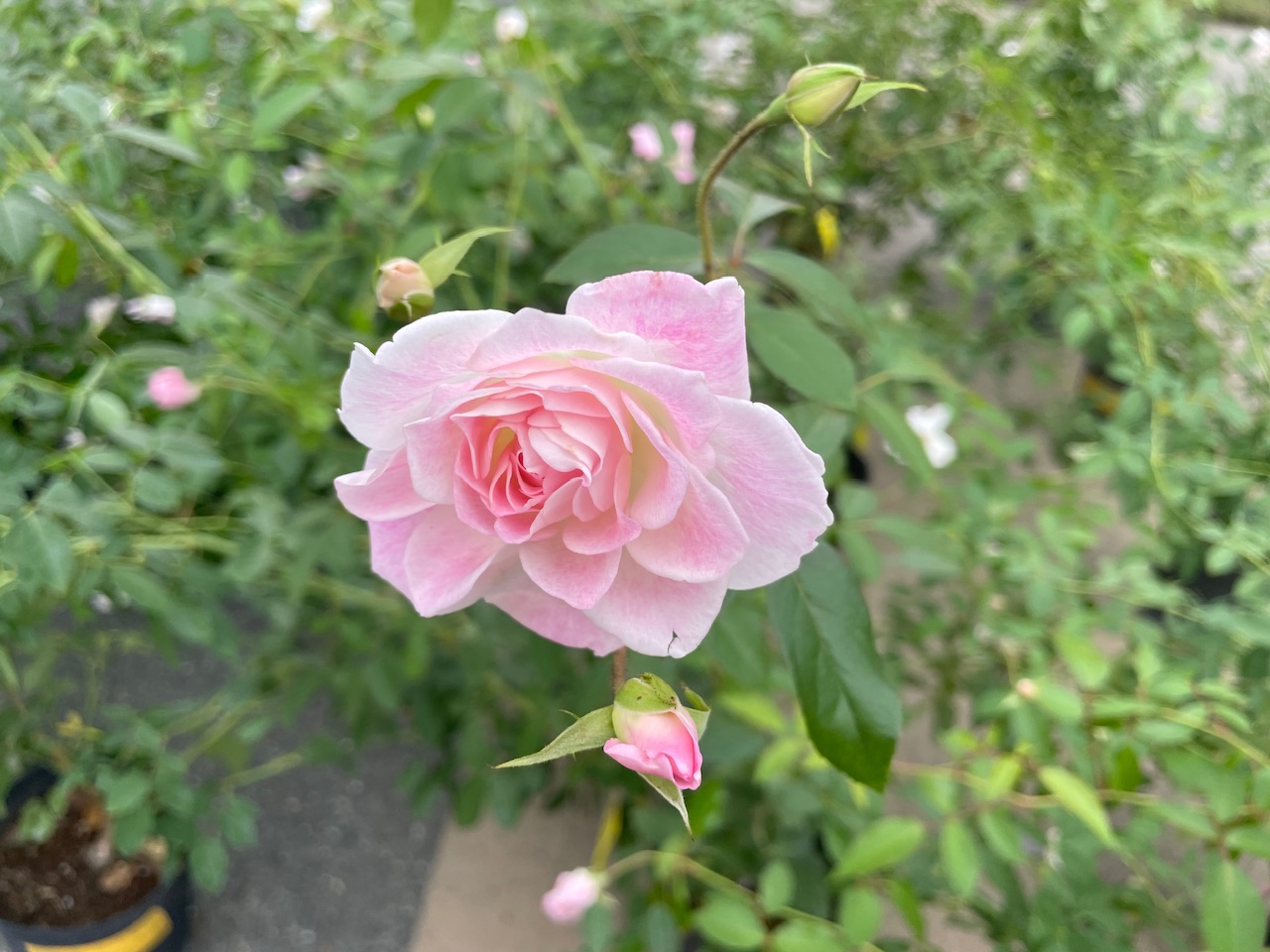 カスケードに植え付けたバラをご紹介します。 全部で4品種ありますが、全てアイスバーグの枝替わり品種で揃えています。 こちらは基本のアイスバーグ