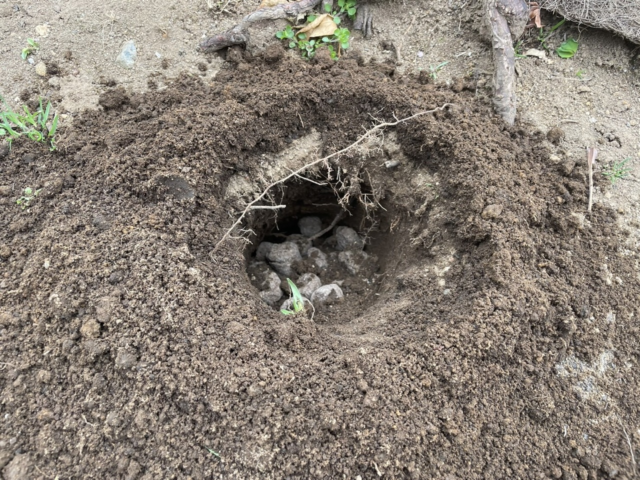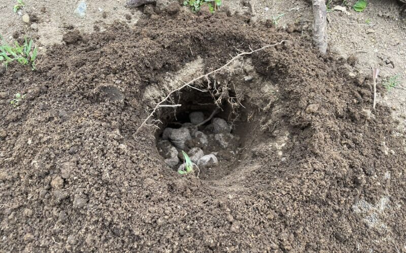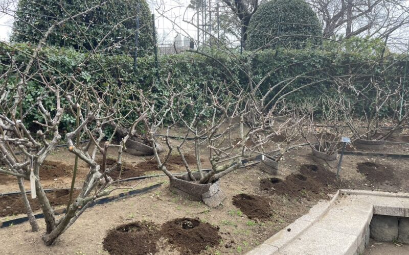 株元に穴をあけて、その中に油かす肥料と牛糞たい肥を入れています。 春の開花が待ち遠しいですね!