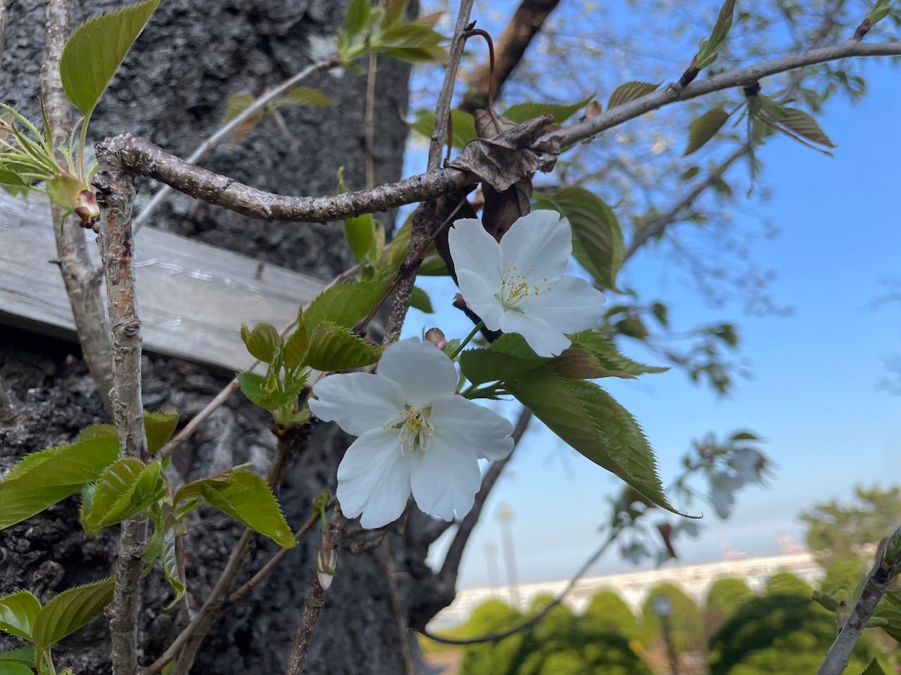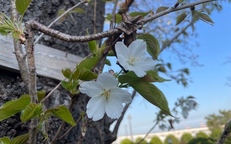 展望広場、ガーデンベア花壇のヨコハマヒザクラ